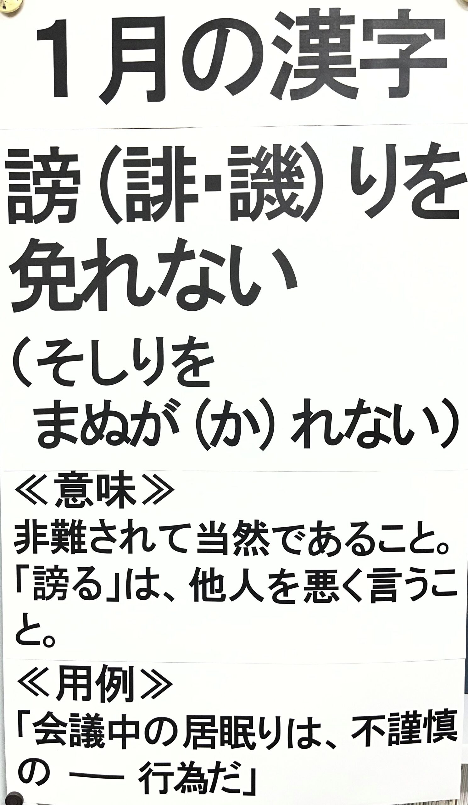 1月の漢字を、事務所のインフォメーションに掲載しました。